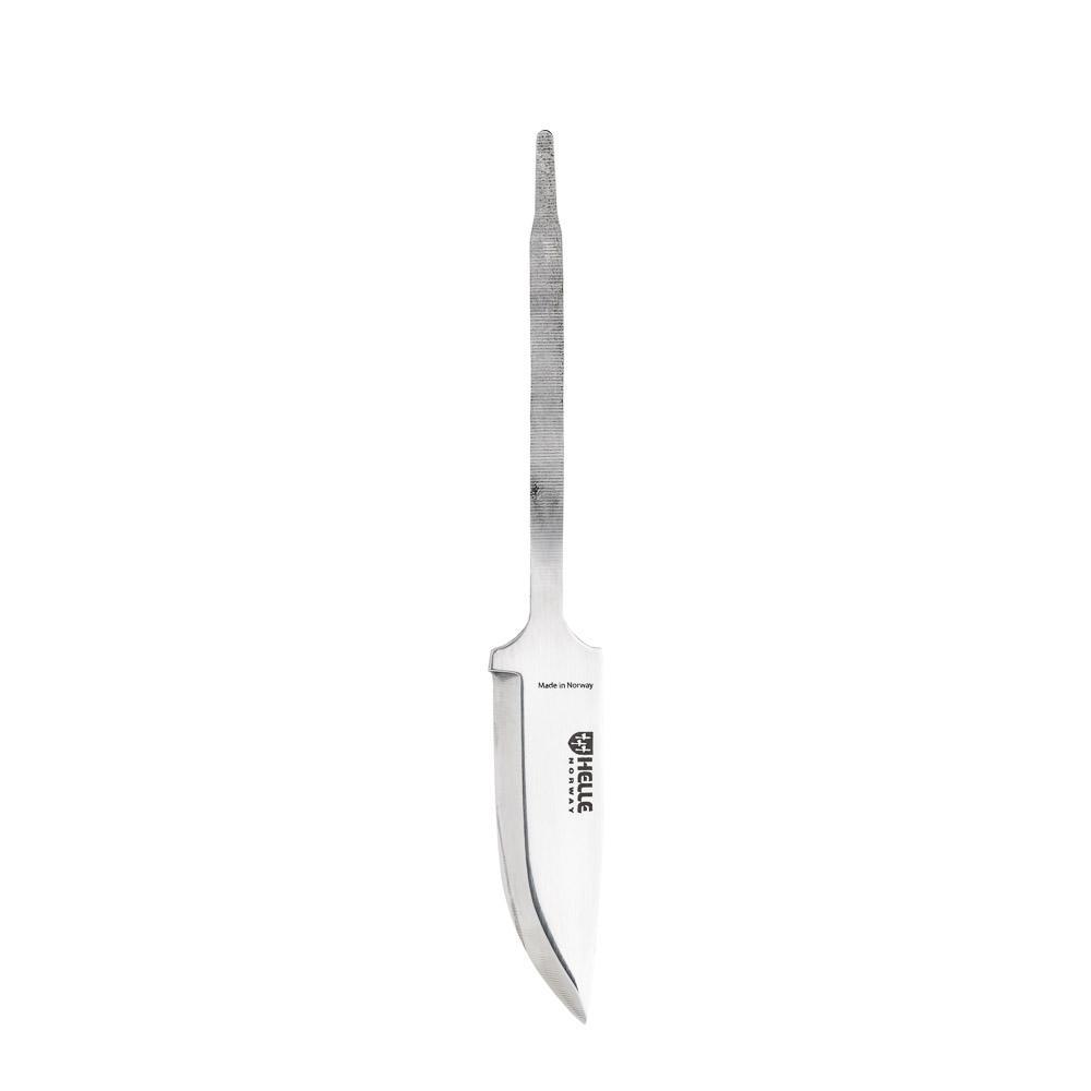 Eit klassisk Helle-knivblad med skandinavisk sliping. Trelagslaminert karbonstål.
